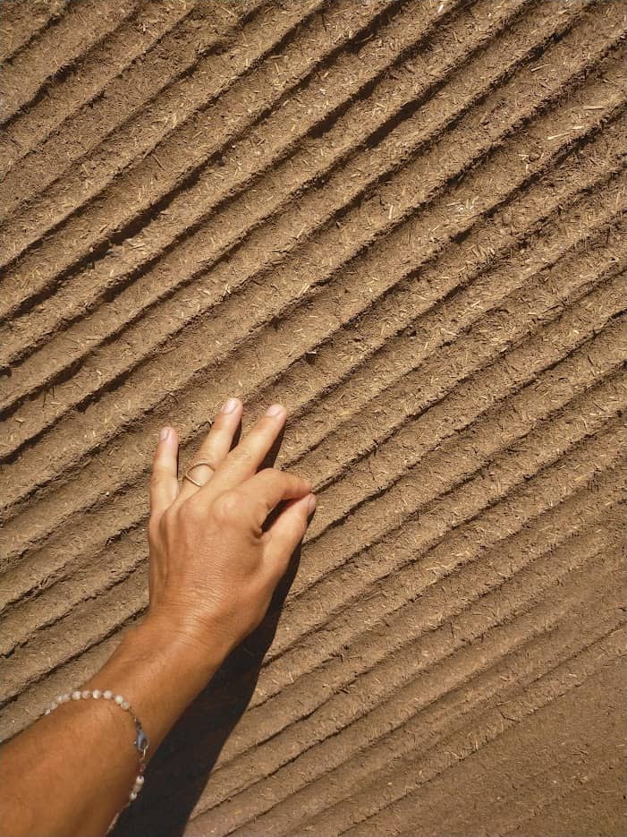 „Atelier Aperto“ is an opportunity for those who already have basic knowledge of clay as a material and who wish to gain experience in order to explore certain topics related to clay coatings, decorative applications and the use of lime. It is an invitation to those who have contacted me for internships to foster sharing and create a working group dedicated to creating something functional and beautiful, free from the strict rules that other types of construction sites require. It is an opportunity to exchange knowledge and different worlds in order to get to know each other and possibly collaborate in the future. The context that will host this initiative is a place that I have seen come into being and transform, as I contributed to the realisation of some of ist parts, such as the interior plastering of a small house, etc. As the work progressed, I was able to immerse myself and witness the transformations of this piece of land and nourish that inner voice that always leads me to seek dialogue with nature in the various aspects of life, to observe and feel more closely how the elements manifest themselves, to learn to recognise plants whose names I did not know, accompanied by the light of the different seasons. These aspects, combined with the type of project and context, the fact that we will be outdoors in nature, represent a formula that, in my opinion, can encourage discovery, research and creativity, drawing richness from that which exudes simplicity.